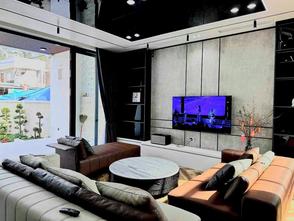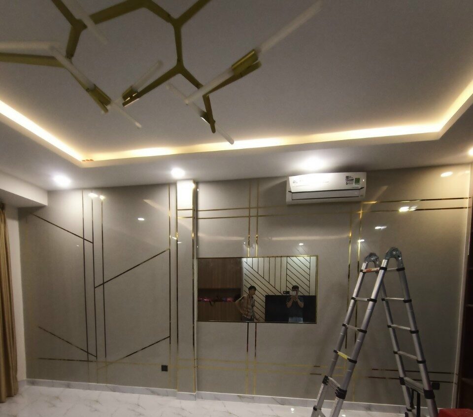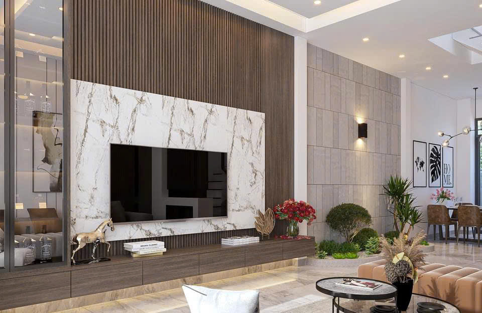 - Tấm ốp PVC làm vách TV, thông tầng