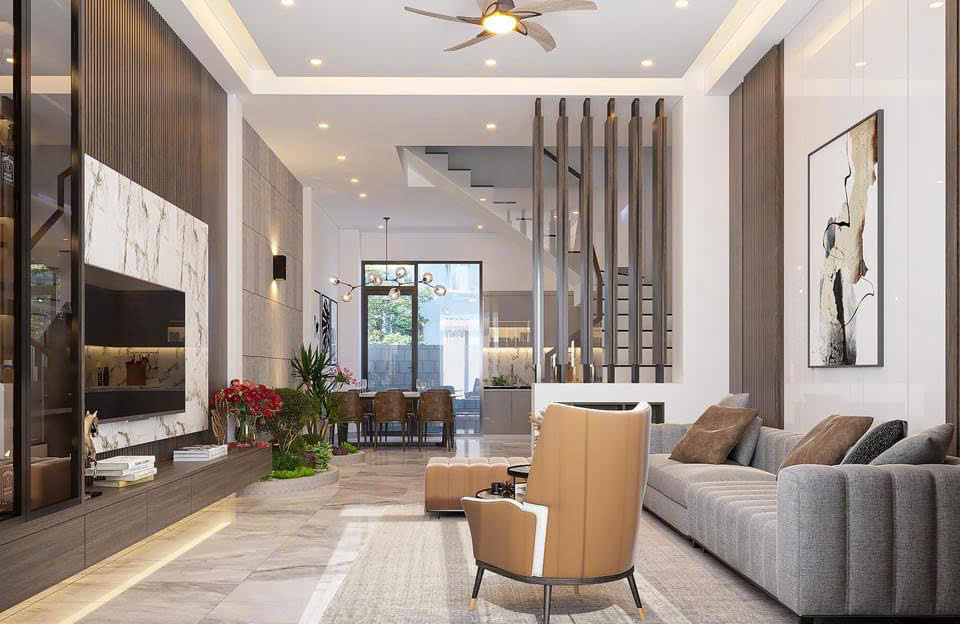 Mẫu phòng khách cho nhà ống 4m theo phong cách hiện đại, sang trọng